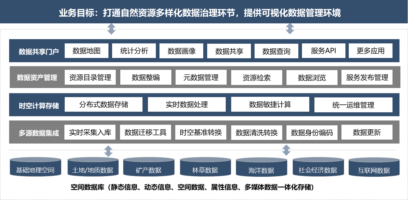 针对自然资源数据来源广、标准各异,数据动态性较高等特征,以时空实体数据存储模型为核心技术,融合数据集成、数据交换、时空计算、数据资产管理等数据全生命周期管理产品模块,打通自然资源数据治理各个环节,产品模块可独立或任意组合使用,快速满足政府、企业各类不同的空间数据整合与集成应用场景。